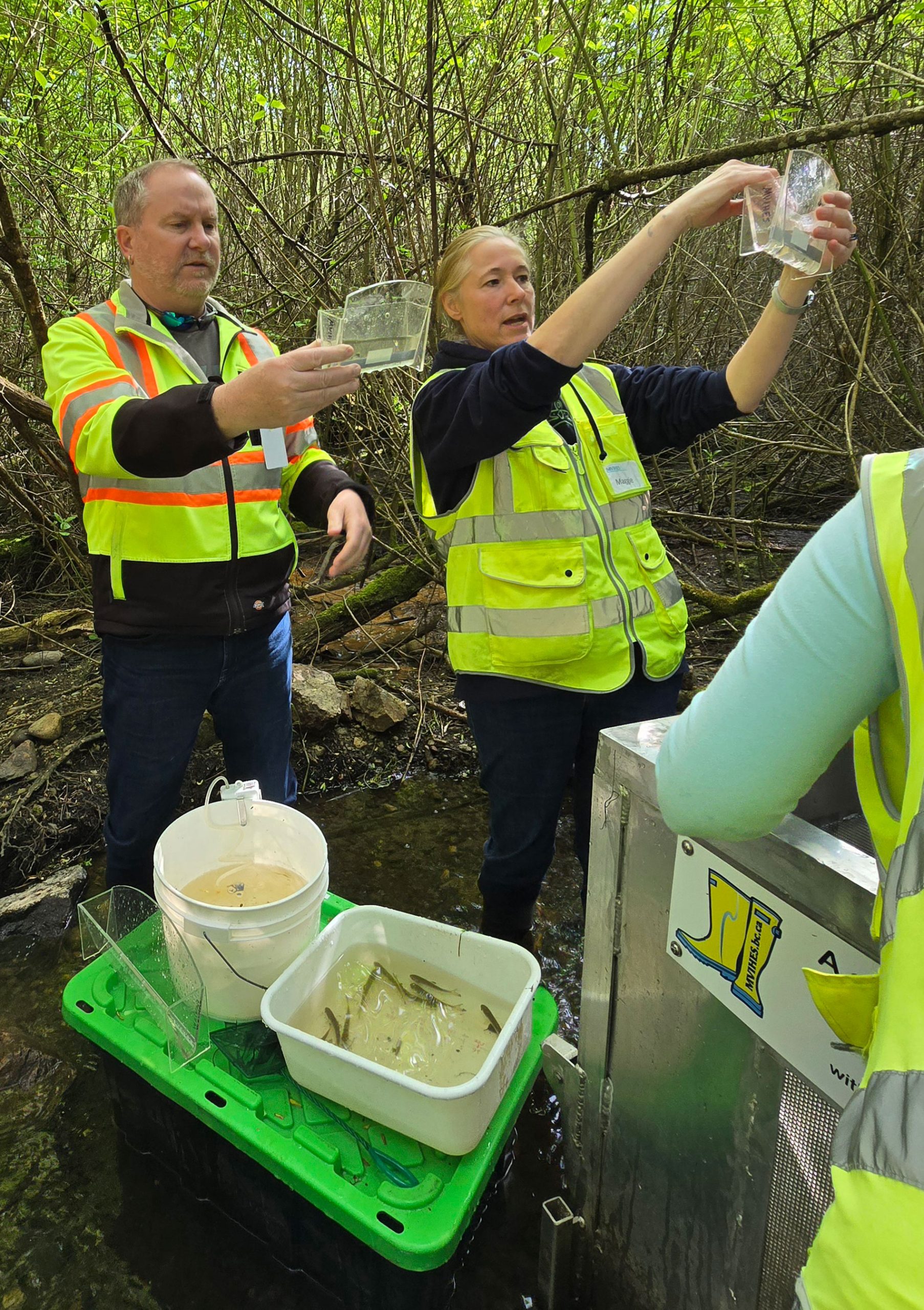 Since 2011, the Mid Vancouver Island Habitat Enhancement Society (MVIHES) has implemented a monitoring program to track juvenile Coho migration. A smolt trap installed upstream from the confluence with the Englishman River has provided valuable data on Coho Salmon populations. Findings indicate that as many as 8,094 Coho smolt have overwintered in Shelly Creek before migrating downstream, reinforcing the creek’s significance as a salmon-supporting habitat.