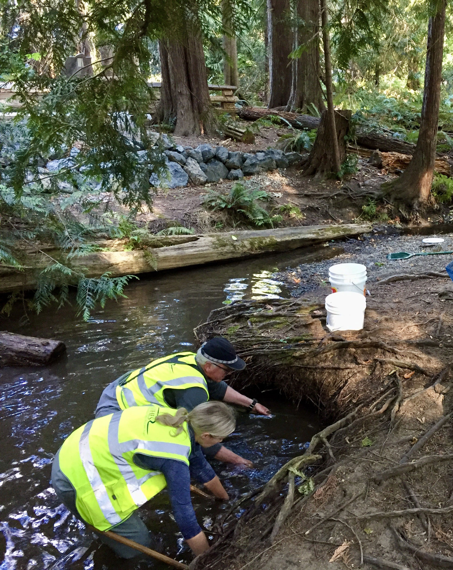 In March 2016, volunteers further supported these efforts by planting native species such as cedar, sword ferns, salmonberry, and red osier dogwood to stabilize disturbed areas. Additional assessments conducted in the upper section of Shelly Creek in 2015 identified significant excavation activities that disrupted the natural hydrology of the watershed.